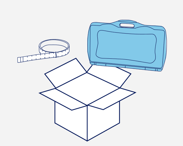 計っていただいた足の計測データや、計測用材料(フットプリンター、用紙、メジャー)を、同梱の送付伝票で返送してください。