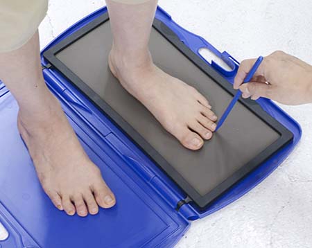 フットプリンターとメジャーを使用して足の計測をします。