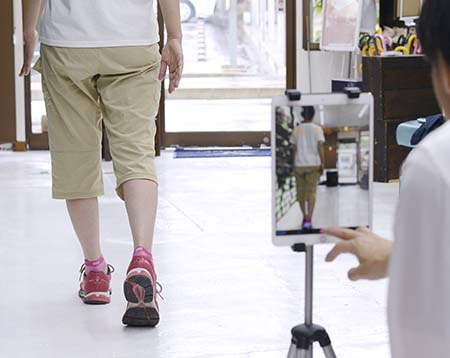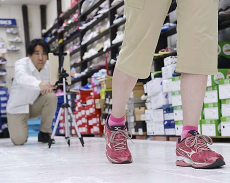 普段履いている靴と選択した靴の歩いている姿を撮影します。